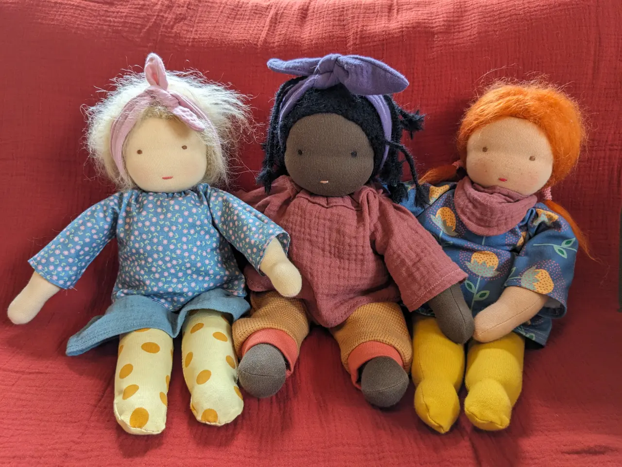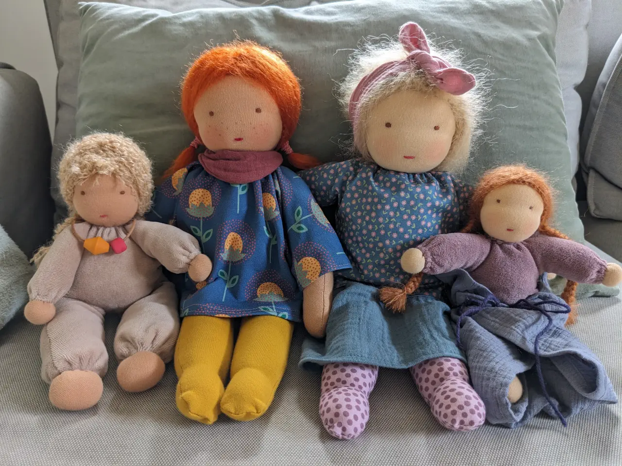 Im Kurs wirst du angeleitet, begleitet und nähst Schritt für Schritt dein Stoffpuppenkind nach Waldorfart. Haut- und Haarfarbe, Mund- und Augenfarbe, Sommersprossen, rote Wangen? Du kannst frei wählen.