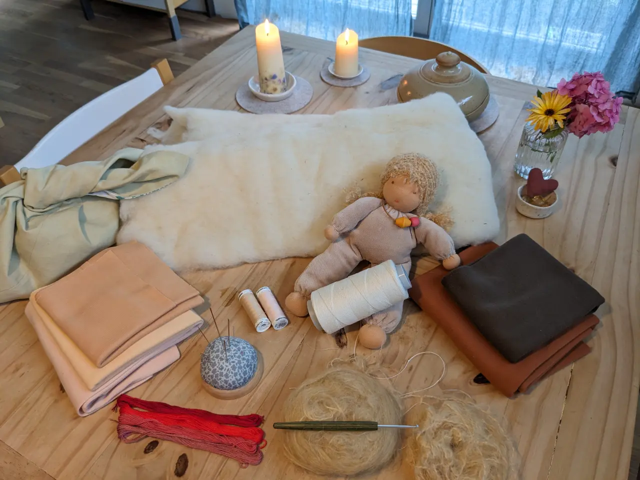 Lass dich verzaubern vom beseelten Nähnadelschwingen, vom wohligen Duft der Schafswolle, vom gemeinsamen Werken am Holztisch und besonders vom ersten Anblick deines Puppenkindes.